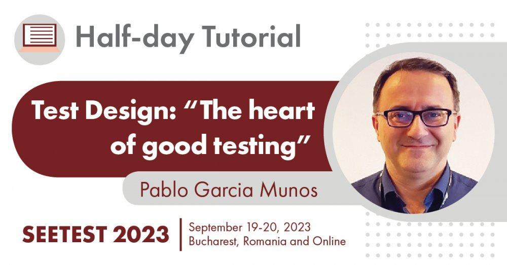 On September 19 Pablo will be presenting his tutorial Test Design : “The heart of good testing.”, where he will be talking about 10 most common test design techniques and the process of structuring your testing to not forget anything important. The answer to these most important questions will be given: 1:How much do you test, 2:What do you NOT test and why, 3:Are you testing enough to know if the system is good and 4:How to test.